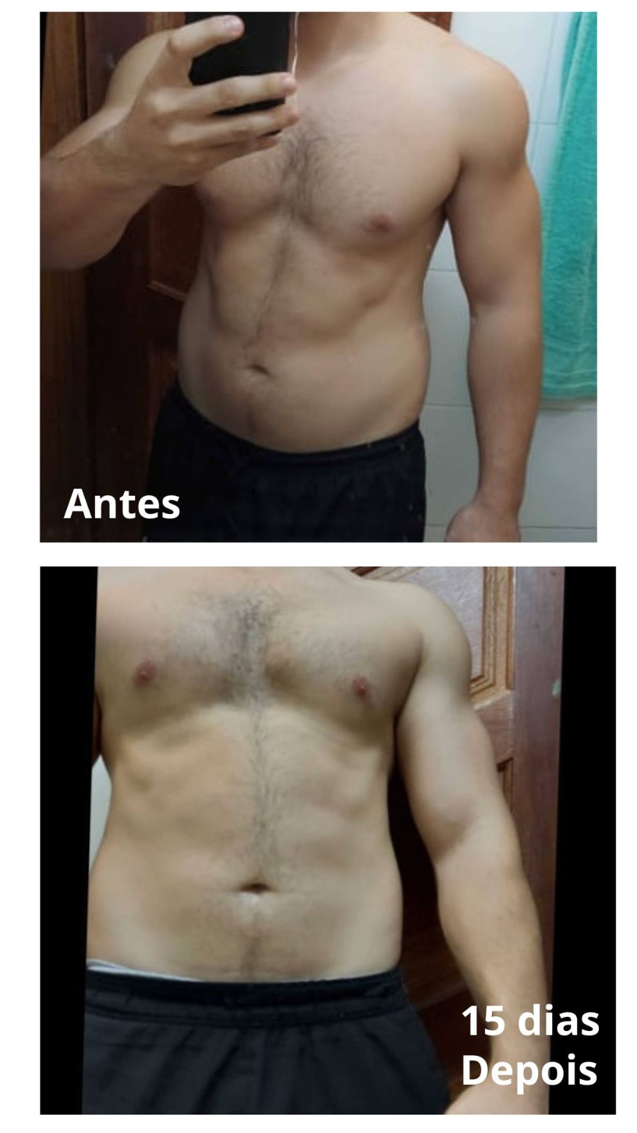 Você me envia fotos de frente, perfil e costas para que eu possa avaliar sua composição corporal. Com essas informações, ajusto o planejamento conforme necessário.
